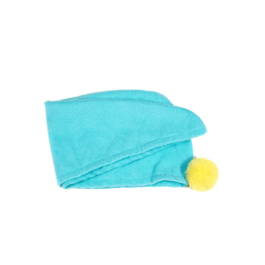 1pc Απορροφητική Πετσέτα-Τυρμπάν Για Στέγνωμα Μαλλιών Με Πομπομ - Γαλάζια | Cheesecake