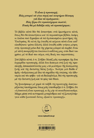 Στο βιβλίο αυτό, ο π. Στήβεν Μιούζ μας προσφέρει όχι ένα εγχειρίδιο προσευχής, αλλά ένα άνοιγμα στη ζωή της προσευχής, αποκαλύπτοντάς μας «το μυστήριο της ενσώματης ζωής και της άκτιστης θείας ζωής». Ανοίγει μια δίοδο σ’ εμάς –ανθρώπους με όλα τα σημάδια της πτώσης, την αδυναμία και τον φόβο– για να διαλεχθούμε, δια της προσευχής, με την άκτιστη ζωή και το φως του Θεού.