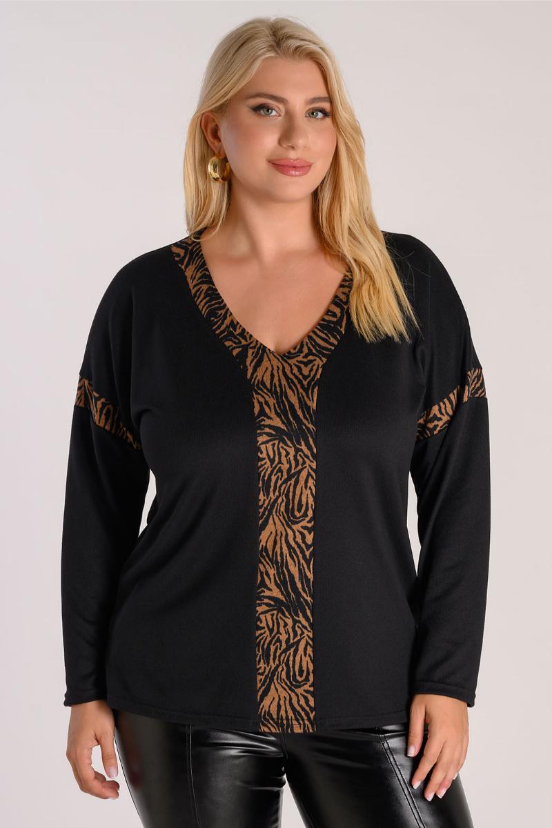 Μπλούζα πλεκτή με λεπτή ύφανση με Vneck διακριτικές λεπτομέρειες σε animal print σε άνετη γραμμή