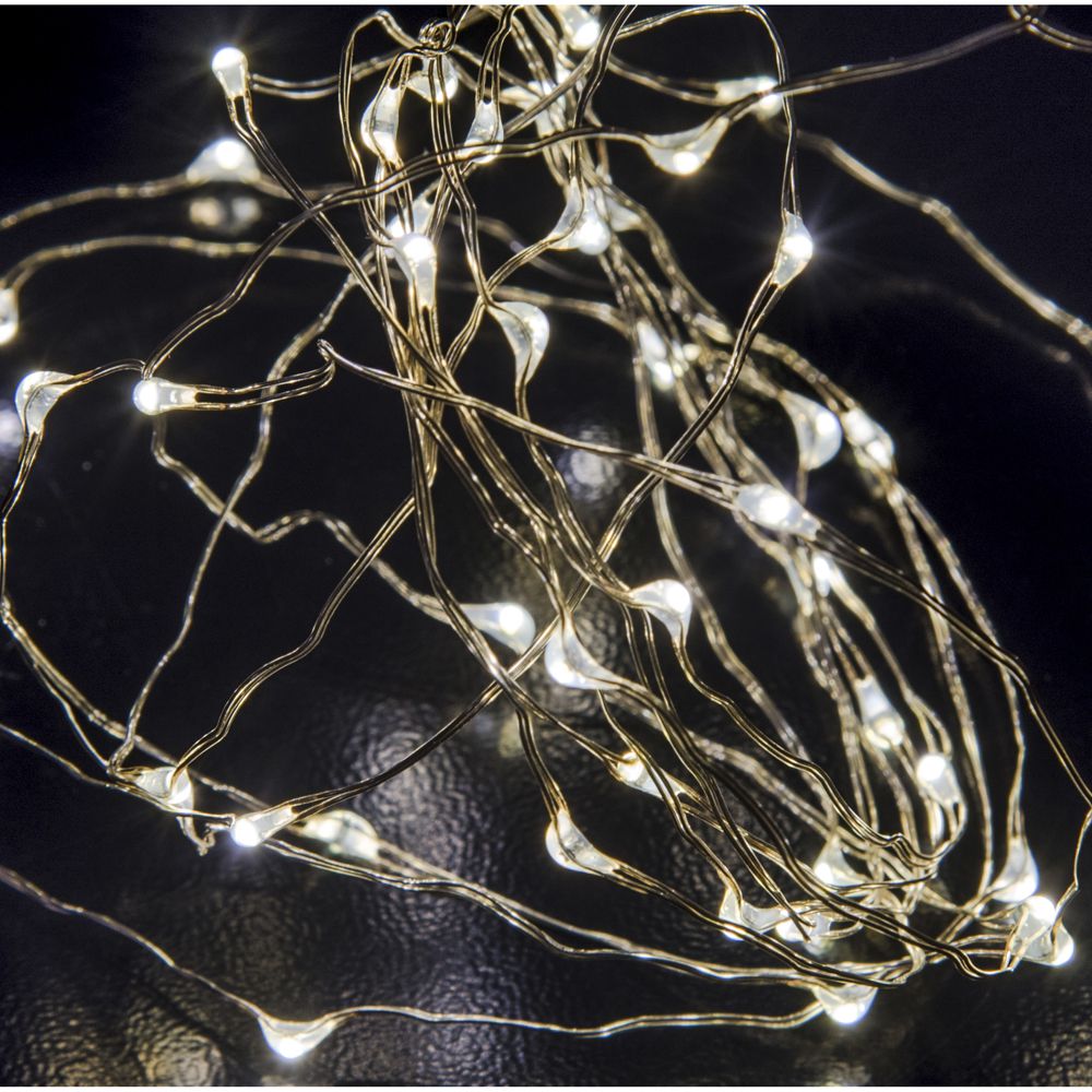 Μπαταρίας σύρμα microled με σταθερό φως. 100led, ανα 5εκ λαμπάκι , μήκος 5μέτρα. Ασημί καλώδιο με ψυχρό ice φως. Λειτουργεί με 3Χ2 μπαταρίες που ΔΕΝ περιέχονται.
