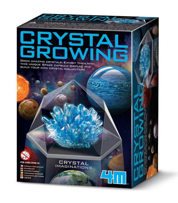 Μάθε πως μπορείς να καλλιεργήσεις εντυπωσιακούς κρυστάλλους στο σπίτι σου! Μπορείς να φτιάξεις τη δικιά σου πολύτιμη συλλογή με αληθινούς κρυστάλλους και να καταπλήξεις τους φίλους και την οικογένειά σου. Διάβασε τα ψυχαγωγικά στοιχεία που περιέχονται και μάθε συναρπαστικές πληροφορίες για τους κρυστάλλους! ΤΡΟΠΟΣ ΛΕΙΤΟΥΡΓΙΑΣ: Όταν προσθέτετε την κρυσταλλική ένωση σε ζεστό νερό, διαλύεται σε μικροσκοπικά σωματίδια. Αυτά τα σωματίδια είναι πολύ μικρά για να τα δείτε. Το υγρό είναι το διάλυμα της σκόνης. Στην πραγματικότητα, είναι κορεσμένο διάλυμα, επειδή αν ανακατέψετε περισσότερη σκόνη, δεν θα διαλυθεί άλλο. Σταδιακά, το νερό κρυώνει και κάποια ποσότητα εξατμίζεται. Τώρα, το νερό δεν μπορεί να διατηρήσει όλα τα σωματίδια διαλυμένα, και μερικά αρχίζουν να ενώνονται ξανά. Περισσότερα σωματίδια ενώνονται μεταξύ τους, και μετά από κάποιο διάστημα, ομάδες σωματιδίων ενώνονται. Τα σωματίδια ενώνονται με τρόπο που δημιουργούν τους κρυστάλλους που βλέπετε, με ευθείες άκρες και επίπεδες επιφάνειες. ΠΕΡΙΕΧΟΜΕΝΑ: σακούλα με λευκή χημική κρυσταλλική ένωση x1, σακούλα που περιέχει χρωστική ουσία x1, βάση κρυστάλλων x1, στρογγυλό χάρτινο κάλυμμα x1, χρωματιστό εξώφυλλο x1, κουτάλι ανάδευσης x1, κάλυμμα εκθεμάτων x1, δοχείο ανάδευσης/διαφανής βάση εκθεμάτων x1. Περιέχονται οδηγίες στα Ελληνικά. Ηλικία: 10+