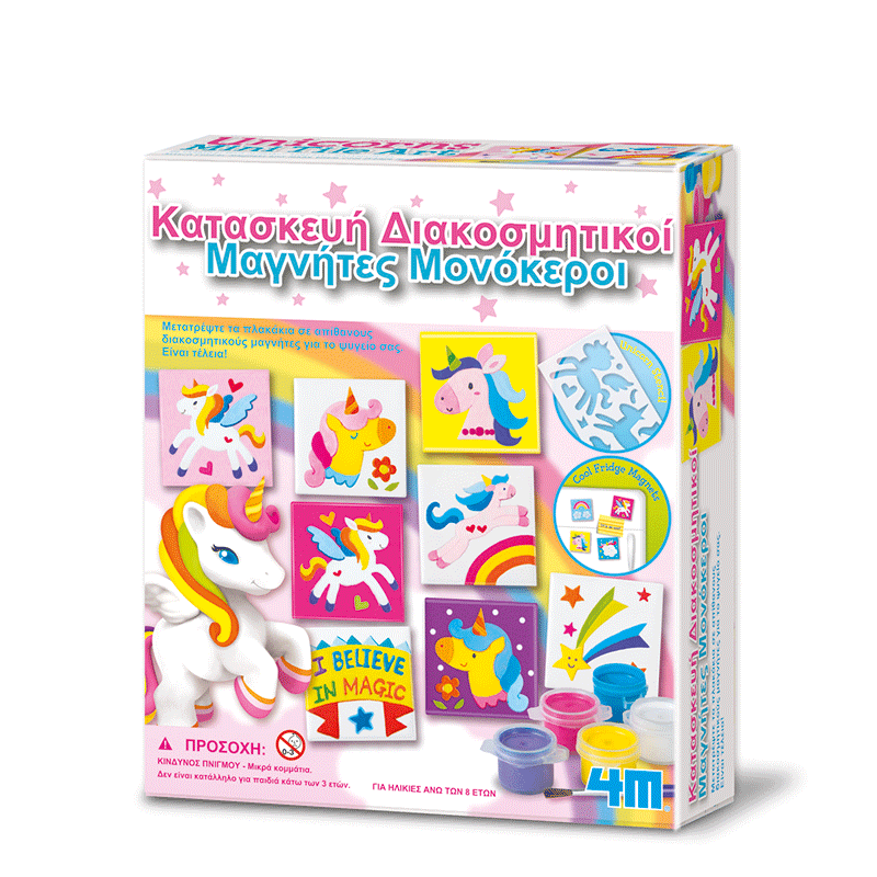 Μάθε κεραμική τέχνη. Γίνε δημιουργός! Μετάτρεψε τα κεραμικά σε αριστουργήματα. Φτιάξε ωραίους μαγνήτες-μονόκερους για να διακοσμήσεις το ψυγείο και το δωμάτιό σου. Περιέχονται οδηγίες στα Ελληνικά. Ηλικία: 5+