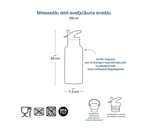 A Little Lovely Company Μπουκάλι θερμός με διπλό τοίχωμα από ανοξείδωτο ατσάλι 350ml Flower Garden Το πιο εύχρηστο και όμορφο παγούρι είναι ΕΔΩ! Είσαστε έτοιμοι για νέες περιπέτειες;;; Μην ξεχάσετε τον τέλειο σύμμαχο σου για την πλήρη ενυδάτωση σου!!! Το μπουκάλι της Little Lovely Company με διπλό τοίχωμα από ανοξείδωτο ατσάλι είναι εδώ για να έχεις πάντα μαζί σου το ρόφημα σου στην θερμοκρασία που εσύ θες! Ιδανικό για το ζεστό ή κρύο ρόφημα σου! Το πιο εύχρηστο και όμορφο παγούρι είναι εδώ με τo πιο χαριτωμένο ρομαντικό σχέδιο! Με διπλό τοίχωμα και φτιαγμένο από ανοξείδωτο ατσάλι είναι τέλειο για το σχολείο, τις βόλτες ή τα ταξίδια μας! Είναι φτιαγμένο και για ζεστά και για κρύα ροφήματα για αυτό και είναι τόσο εύχρηστο!! Θα το βρείτε με ενσωματωμένο καλαμάκι το οποίο χρησιμοποιείται για τα κρύα ροφήματα ενώ για τα ζεστά συνιστούμε το ανοξείδωτο καπάκι που θα βρείτε εδώ! Και αν θέλετε να ολοκληρώσετε το σετ φαγητού δείτε και το ασορτί δοχείο φαγητού (Lunchbox). Χαρακτηριστικά: Χωρητικ