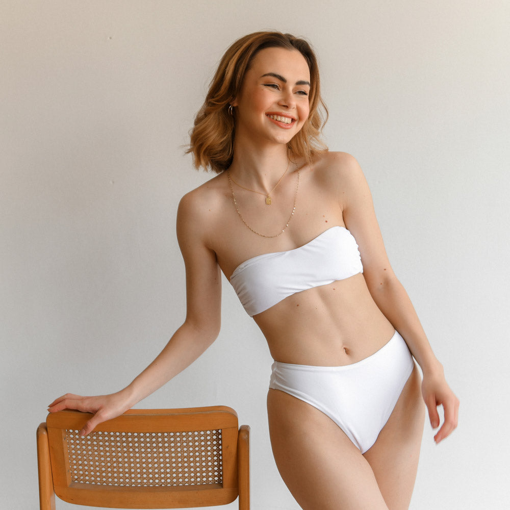 SWI-065 Μαγιό μπικίνι bandeau ψηλόμεσο λευκό