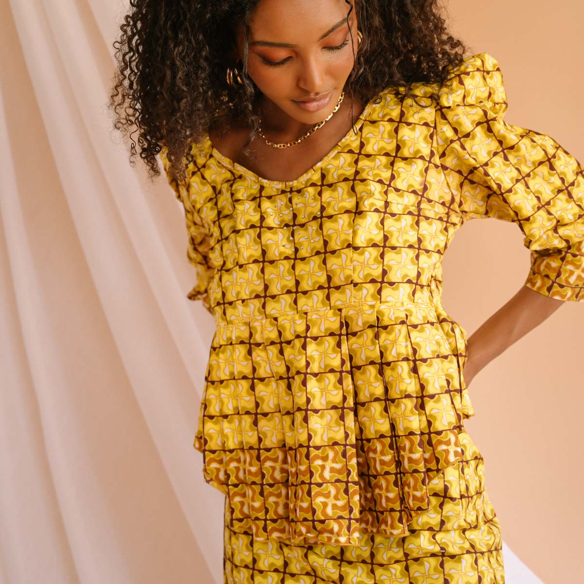 VIN-BLO-16231 Vintage τοπ african style κίτρινο S-Μ