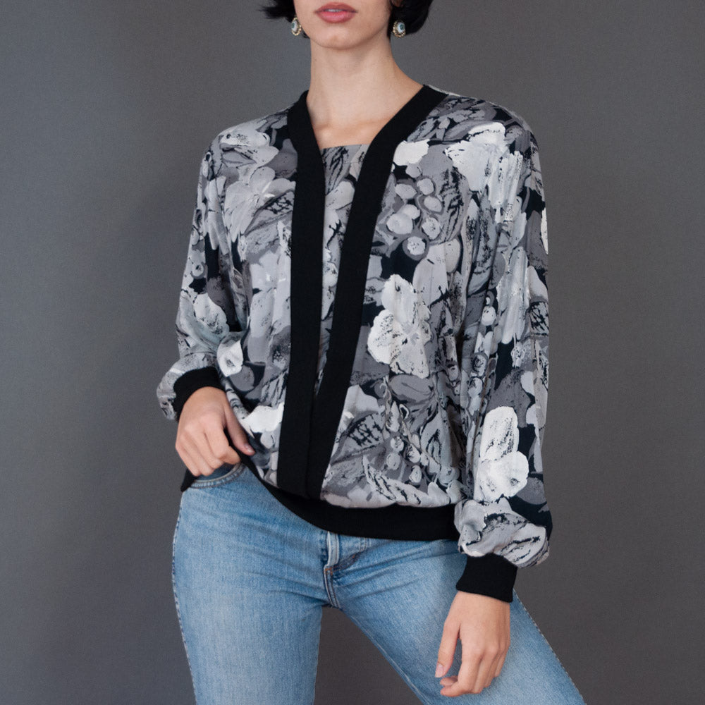 VIN-BLO-20069 Vintage μπλούζα φλοραλ L