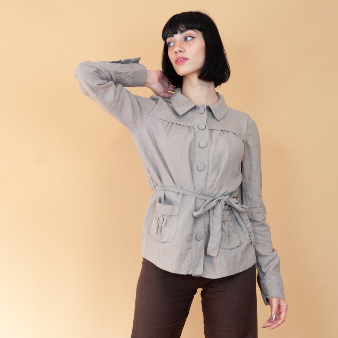 VIN-BLO-23714 Vintage πουκάμισο λινό γκρι M
