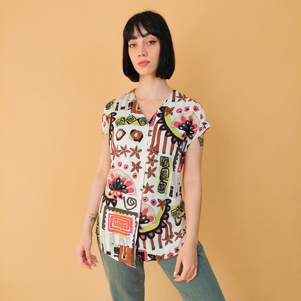 VIN-BLO-27489 Vintage πουκάμισο εμπριμέ Μ
