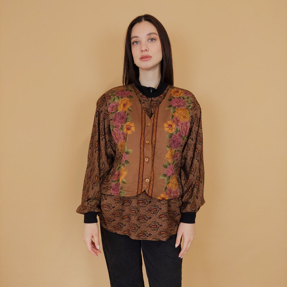 VIN-BLO-30686 Vintage τοπ εμπριμέ 80's M-L