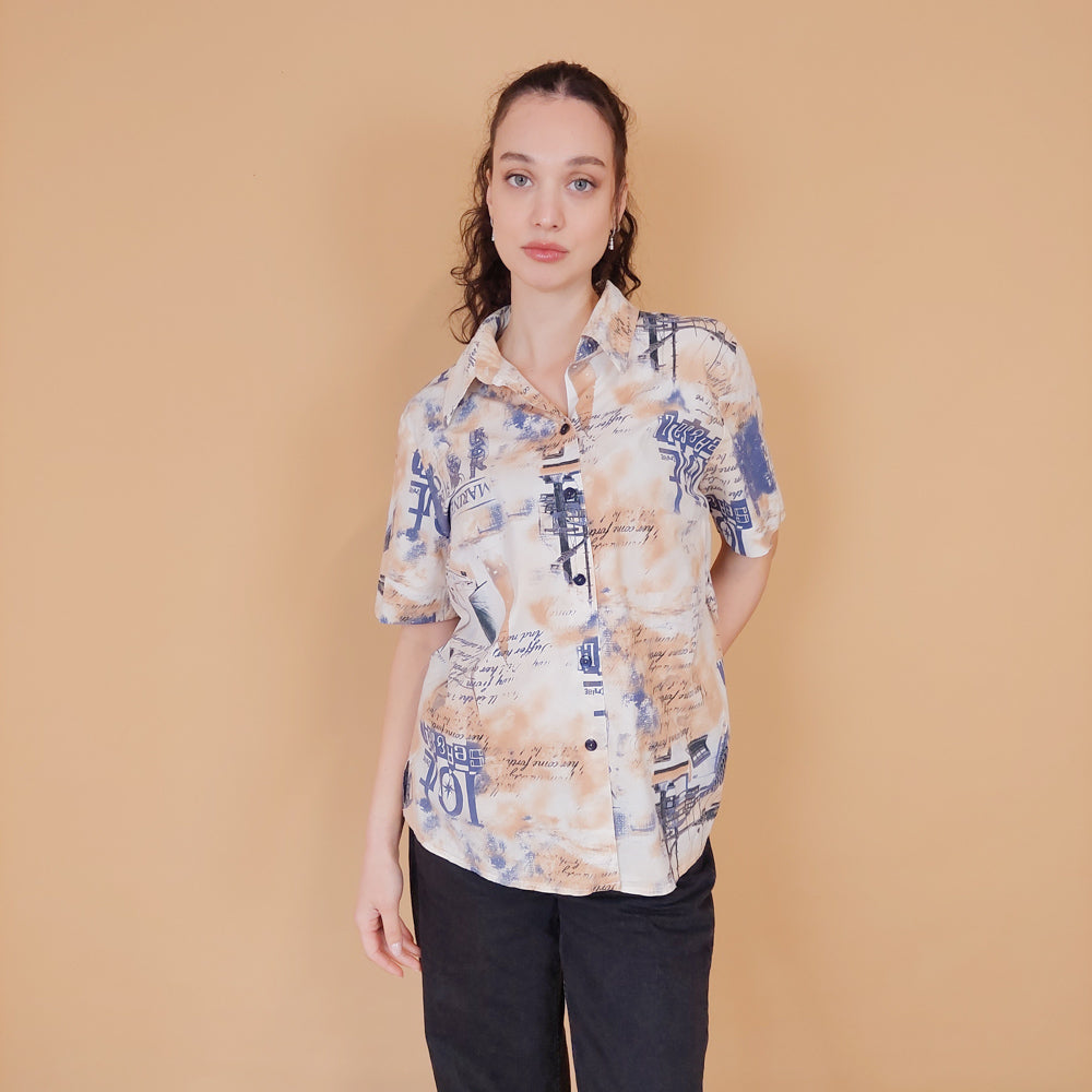 VIN-BLO-30857 Vintage εμπριμέ πουκάμισο M-L
