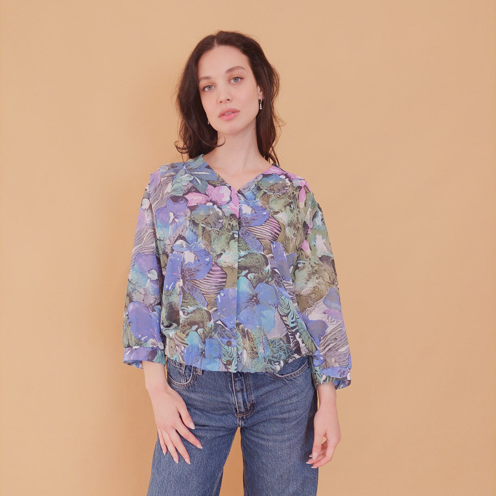 VIN-BLO-31359 Vintage εμπριμέ τοπ βισκόζη M-L