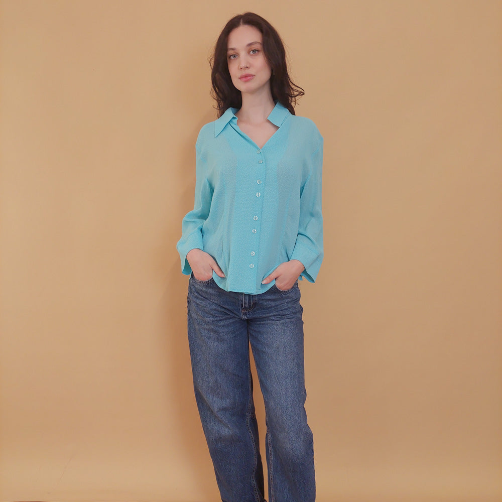VIN-BLO-31369 Vintage πουκάμισο γαλάζιο πουά M