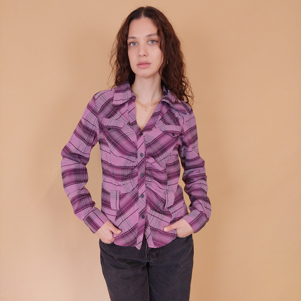 VIN-BLO-32129 Vintage πουκάμισο καρό S-M