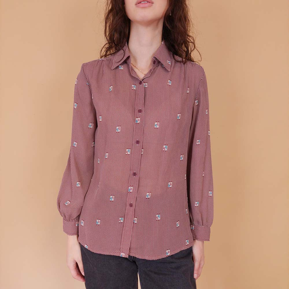 VIN-BLO-32151 Vintage πουκάμισο πουά S-M