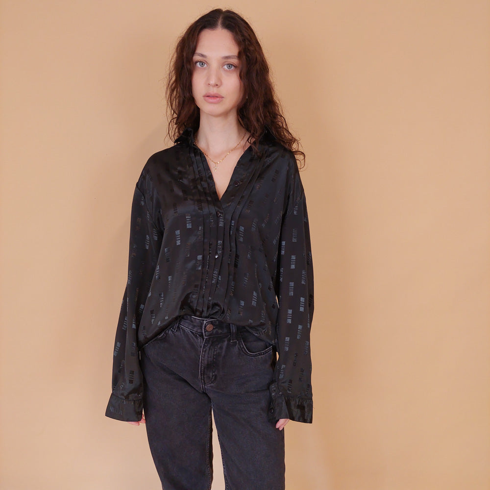 VIN-BLO-32157 Vintage πουκάμισο μαύρο σατινέ L