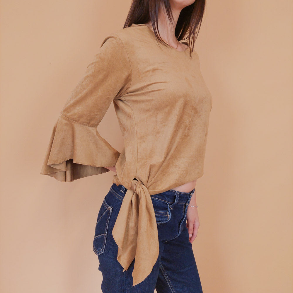 VIN-BLO-32543 Vintage τοπ μπεζ L