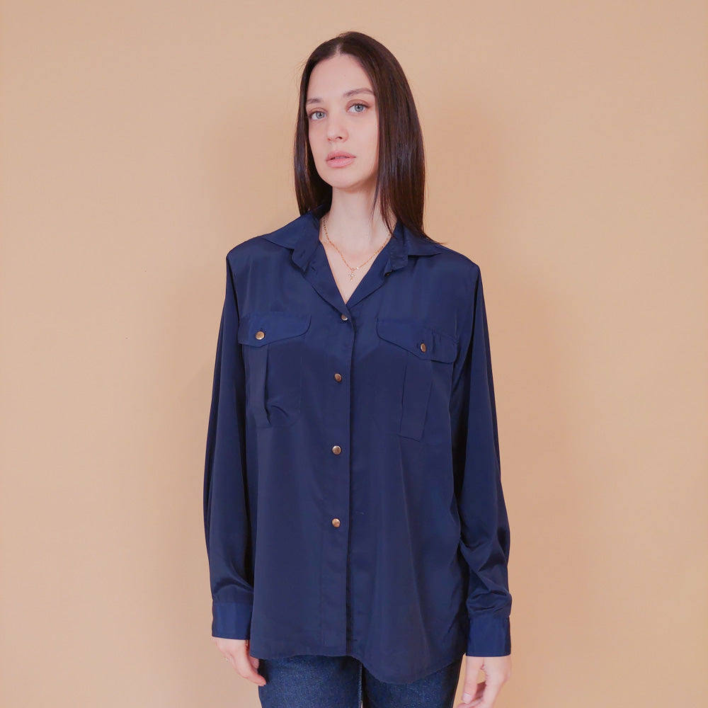 VIN-BLO-32606 Vintage πουκάμισο μπλε M-L
