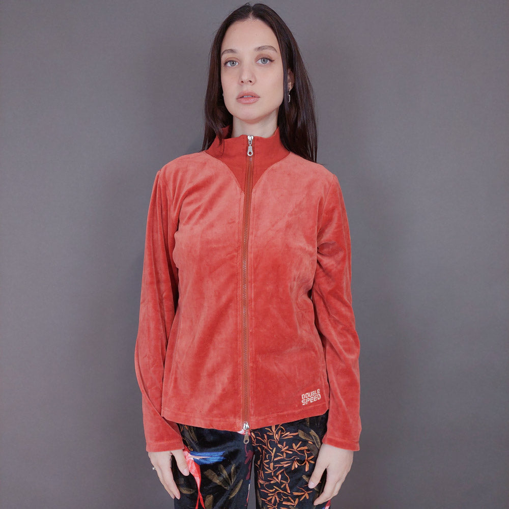 VIN-BLO-33272 Vintage ζακέτα βελουτέ κεραμιδί M-L