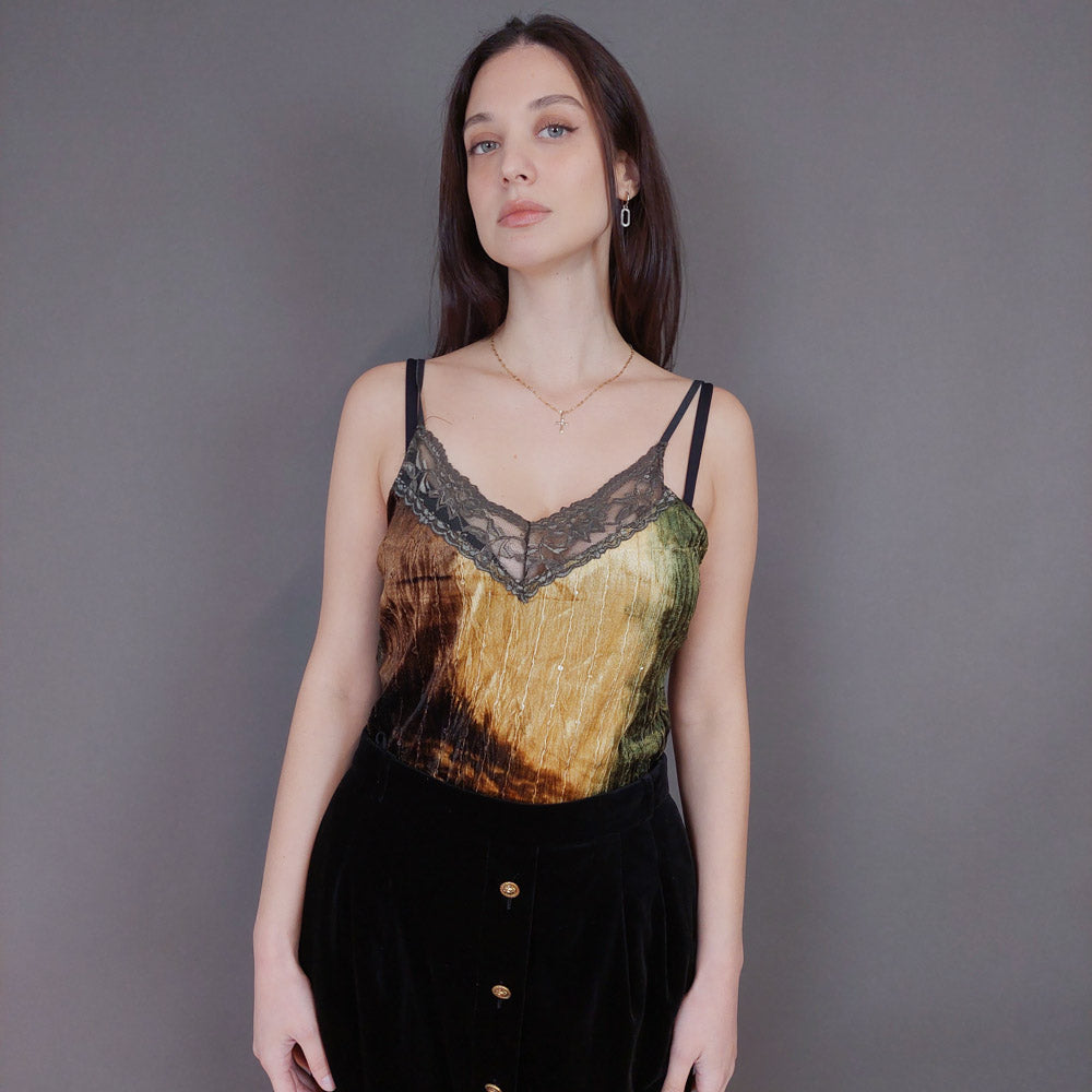 VIN-BLO-33278 Vintage τοπ βελουτέ εμπριμέ L-XL
