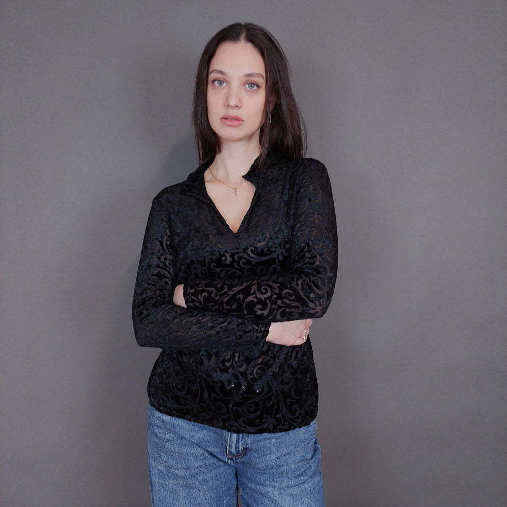 VIN-BLO-33280 Vintage τοπ ημιδιαφανές βελουτέ S-M