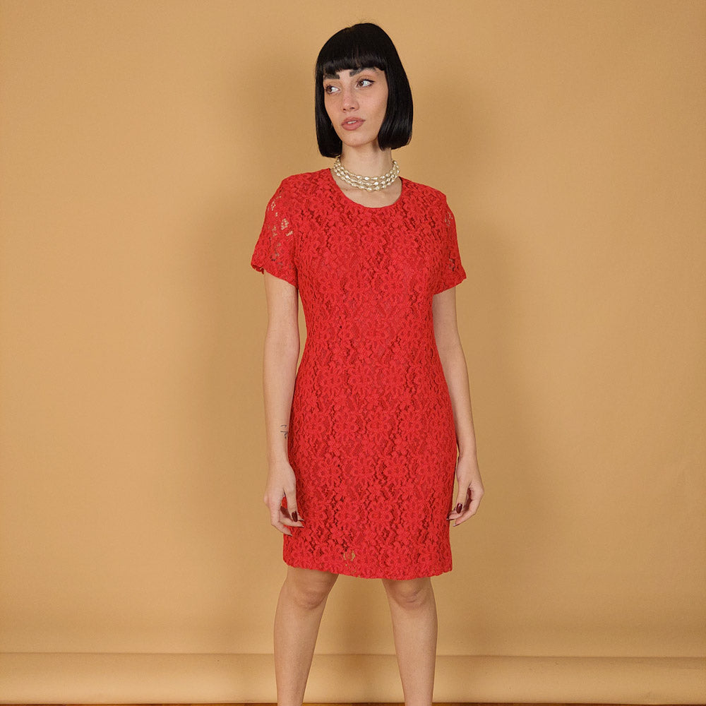 VIN-DR-25878 Vintage φόρεμα δαντέλα κόκκινο S