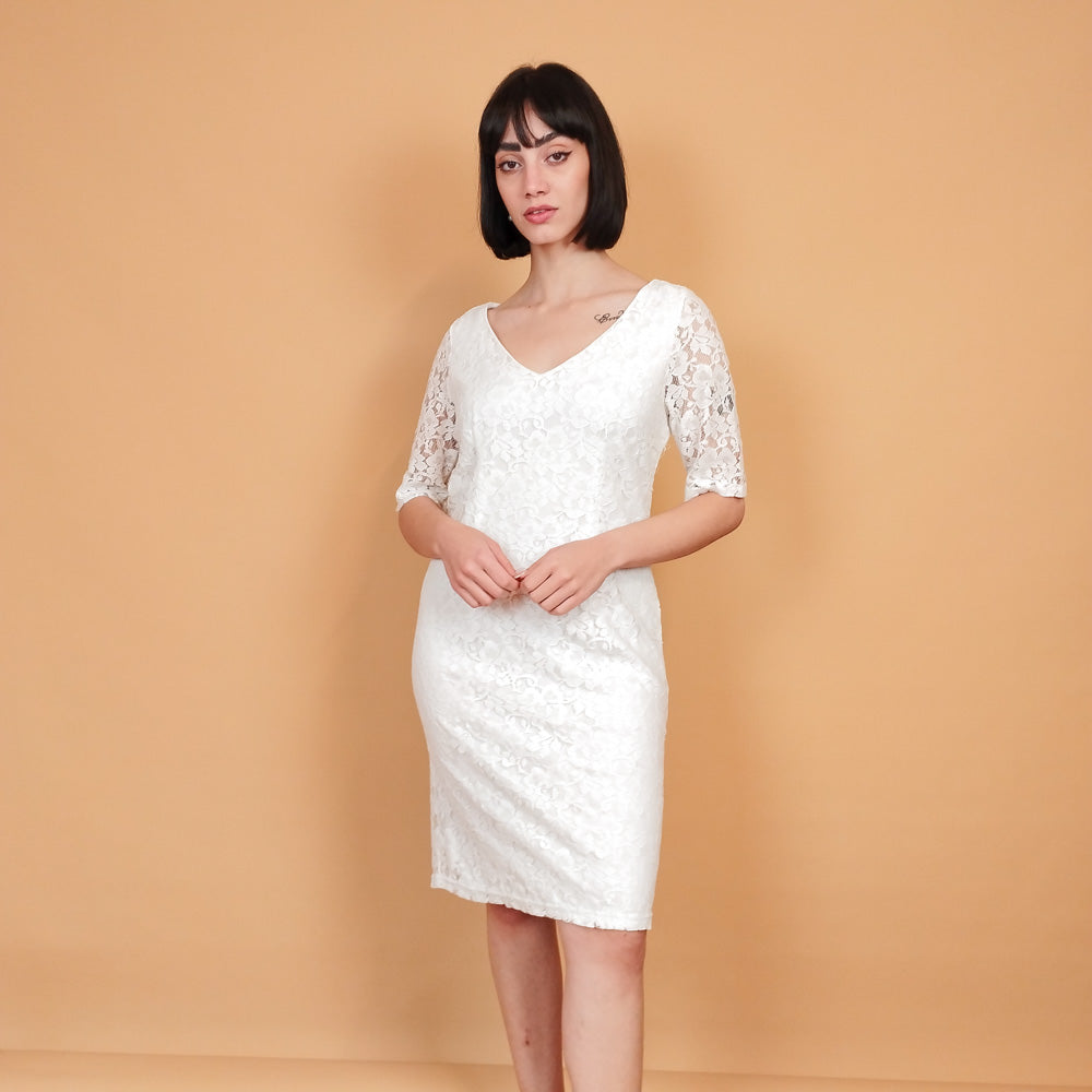 VIN-DR-27450 Vintage φόρεμα λευκό με δαντέλα M-L