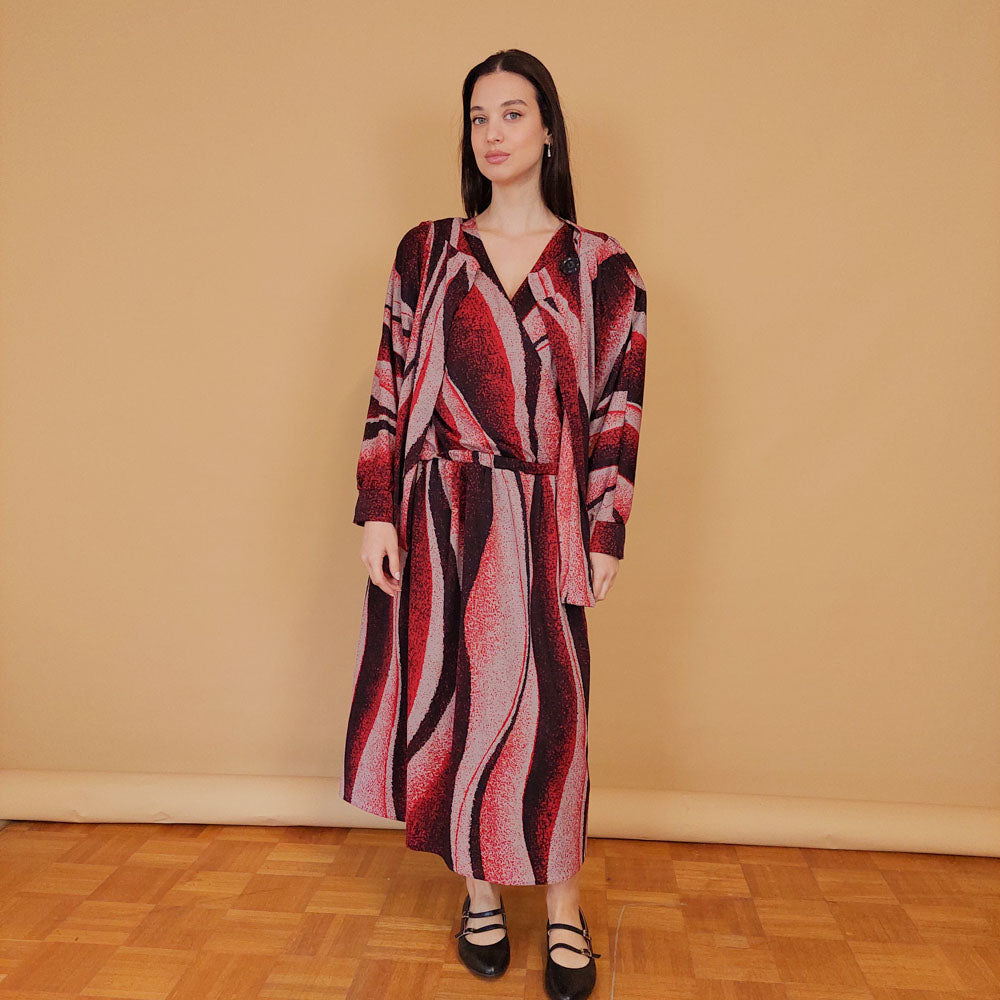 VIN-DR-29535 Vintage φόρεμα εμπριμέ με ζακέτα L-XL