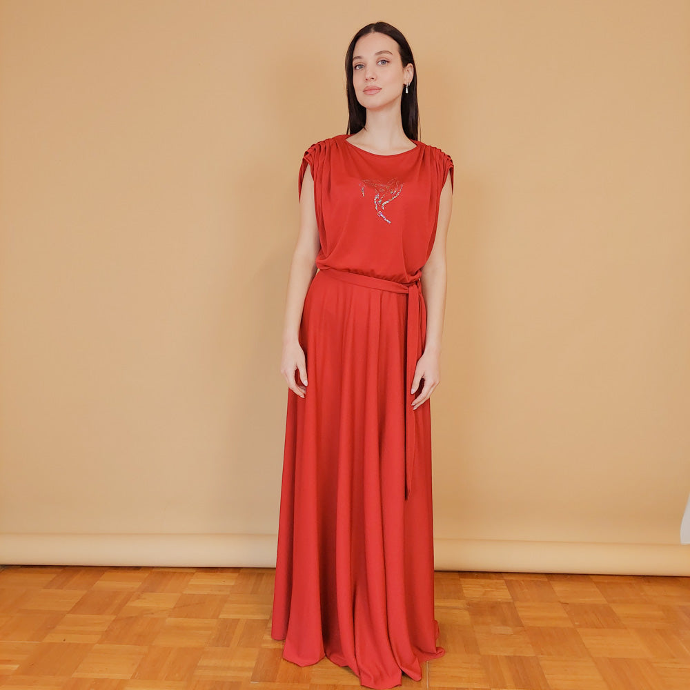 VIN-DR-30192 Vintage φόρεμα maxi κόκκινο M-L