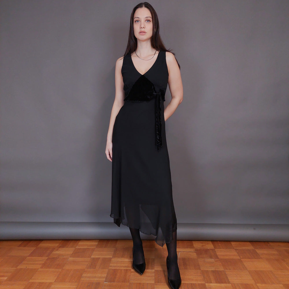 VIN-DR-32949 Vintage φόρεμα μαύρο με βελουτέ λεπτομέρεια S-M