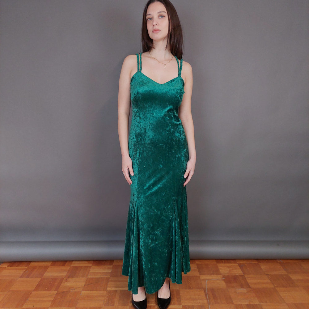 VIN-DR-33285 Vintage φόρεμα μάξι βελουτέ σμαραγδί M-L