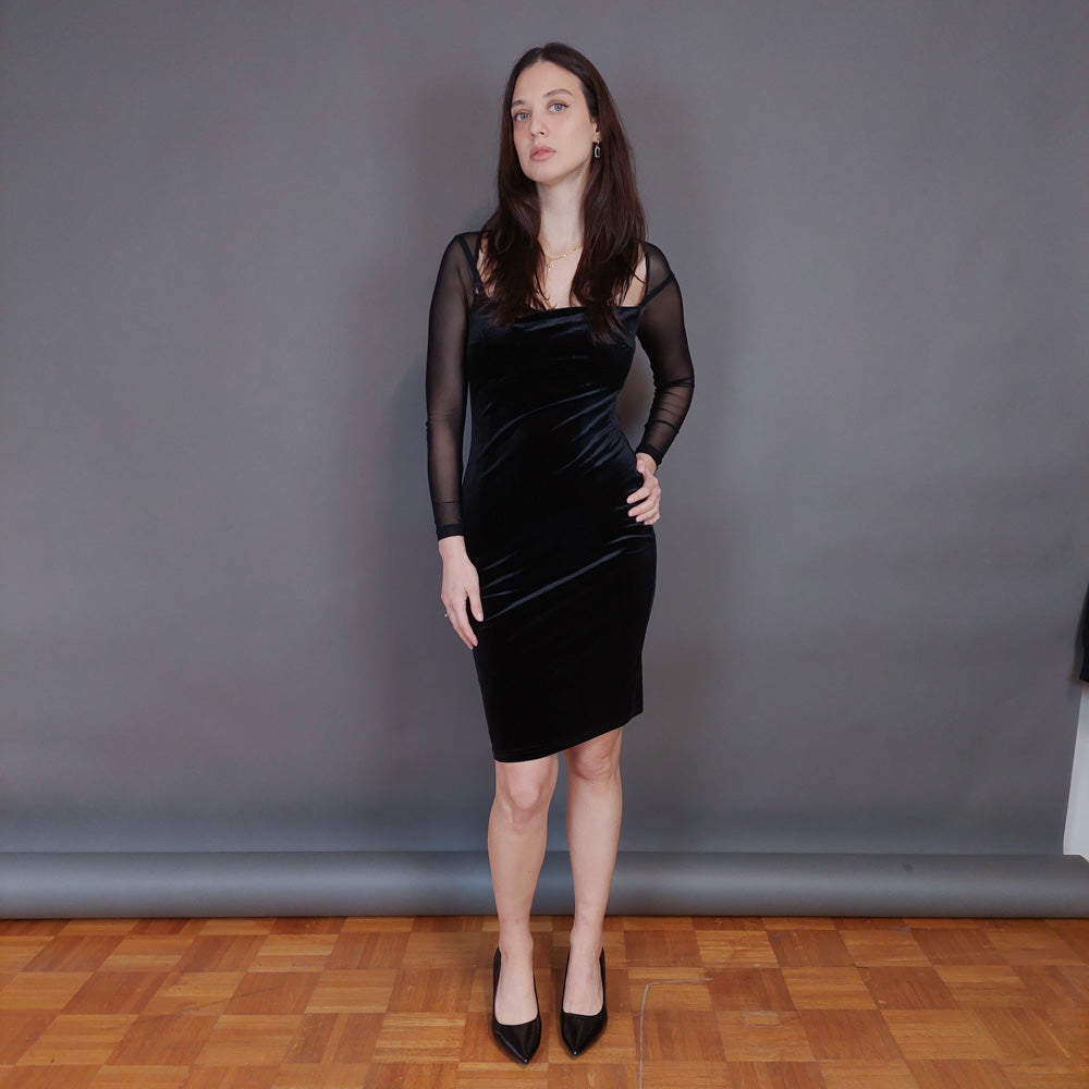 VIN-DR-33287 Vintage φόρεμα βελουτέ μαύρο S