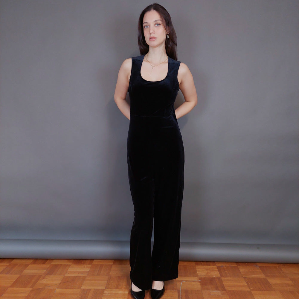 VIN-DR-33292 Vintage ολόσωμη φόρμα βελουτέ μαύρη S-M