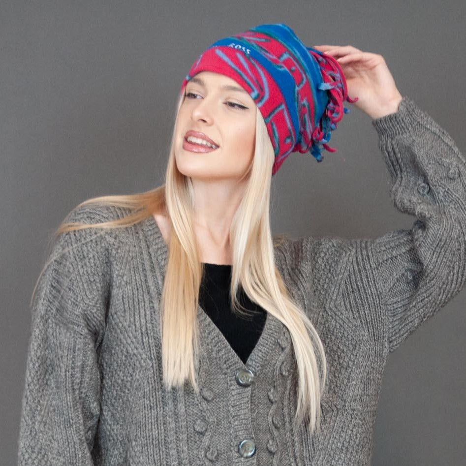 VIN-HAT-19736 Vintage σκούφος φλις εμπριμέ