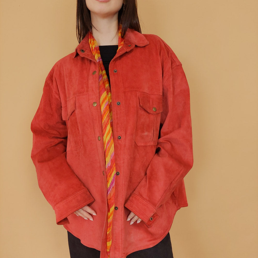 VIN-OUTW-30725 Vintage σουέντ τζάκετ κόκκινο 90's L