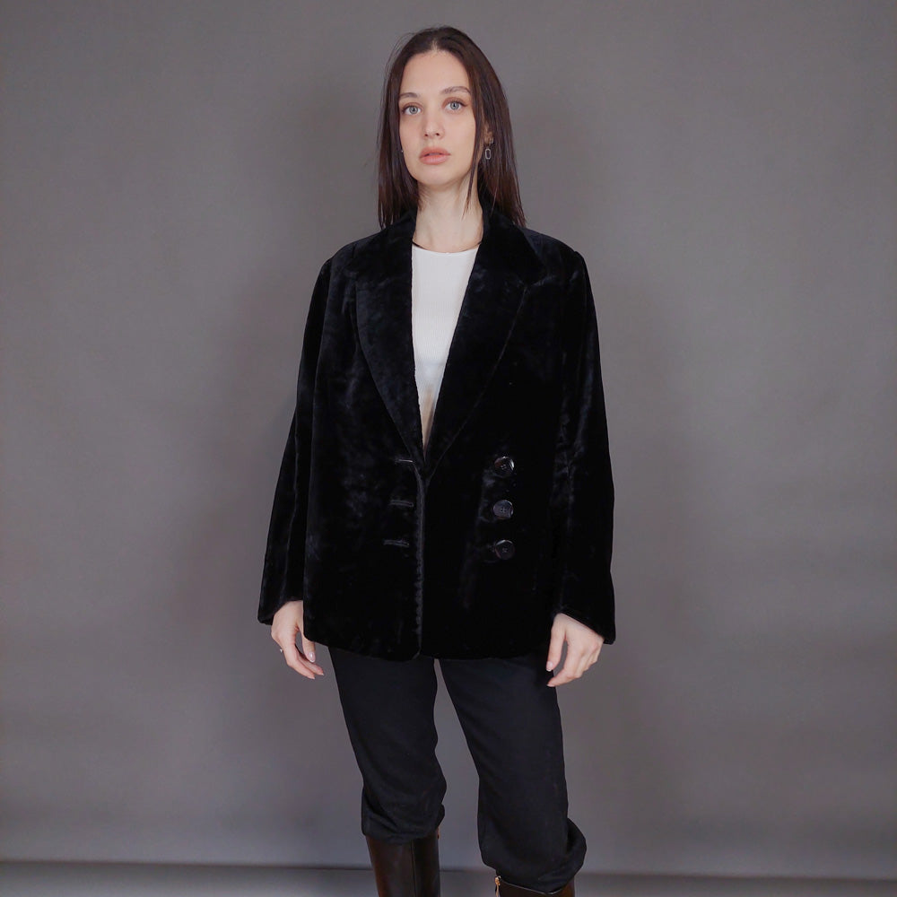 VIN-OUTW-32901 Vintage σακάκι βελουτέ μαύρο S