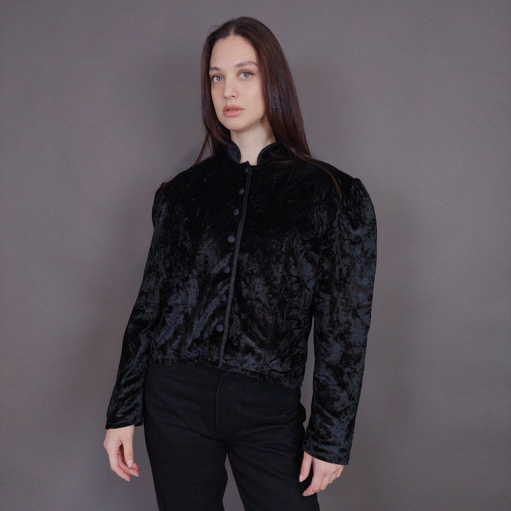 VIN-OUTW-32903 Vintage σακάκι βελουτέ μαύρο M-L