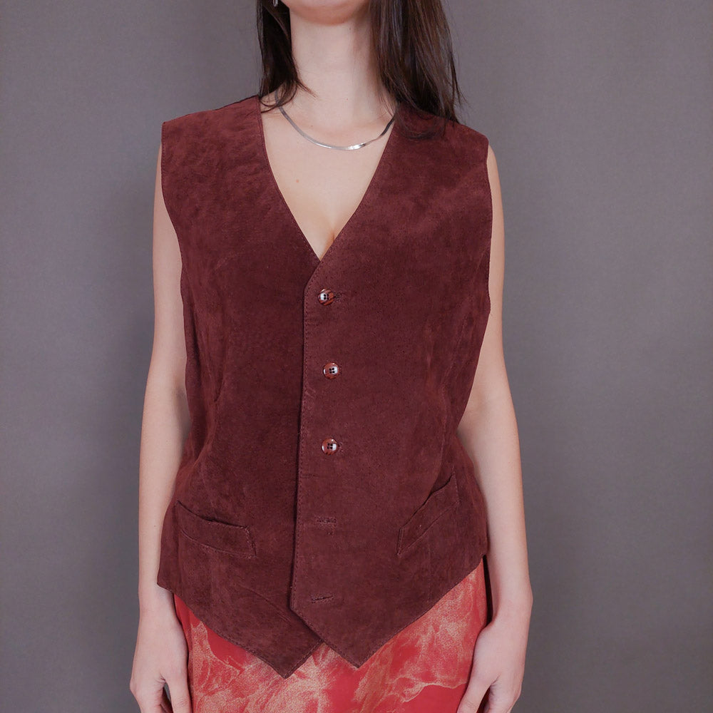 VIN-OUTW-32946 Vintage γιλέκο γυναικείο δερμάτινο σουέντ L
