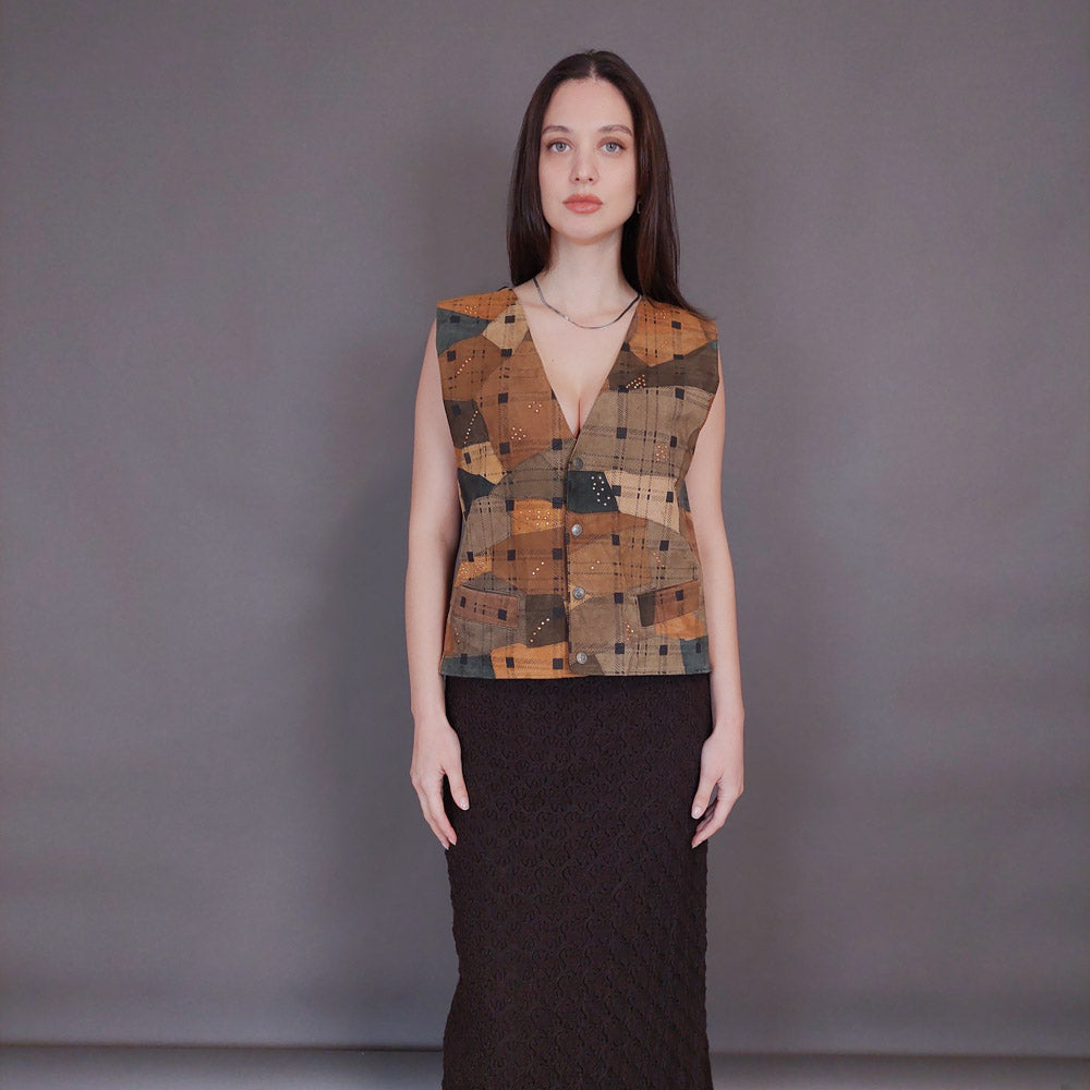 VIN-OUTW-32947 Vintage γιλέκο γυναικείο δερμάτινο σουέντ Μ