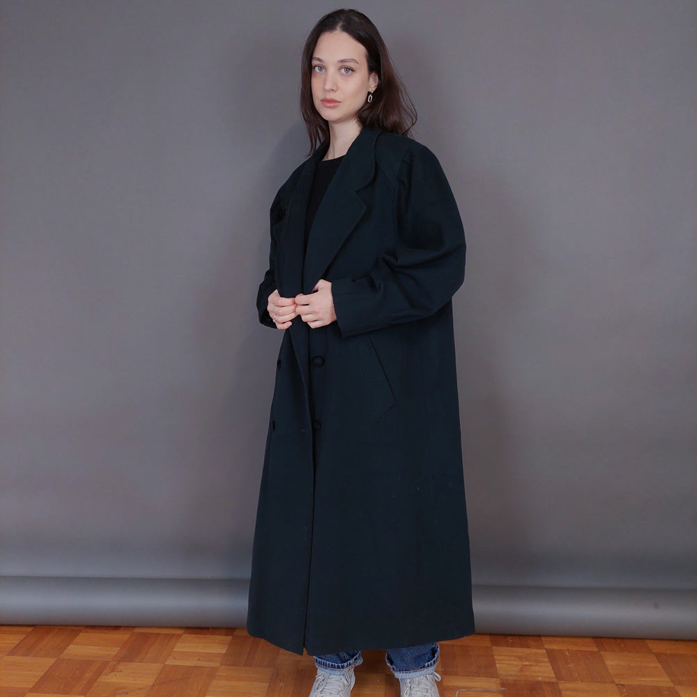 VIN-OUTW-33260 Vintage παλτό μάλλινο με κασμίρ κυπαρισσί XL