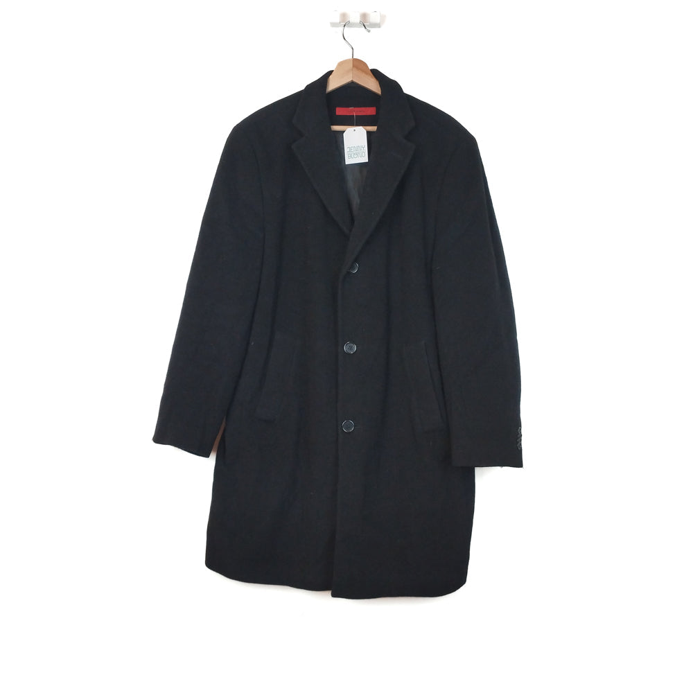 VIN-OUTW-33424 Vintage παλτό μάλλινο μαύρο με κασμίρ L