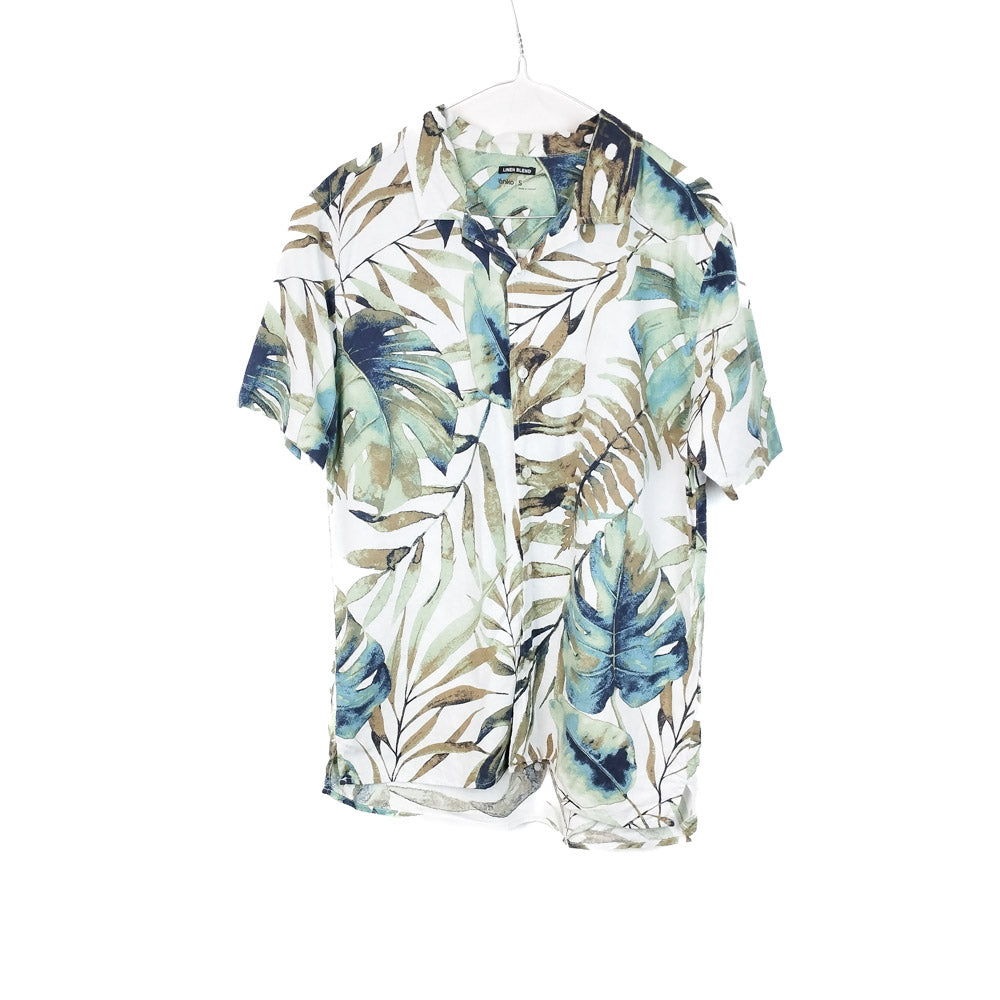 VIN-SHI-31927 Vintage πουκάμισο λινό hawaiian print S