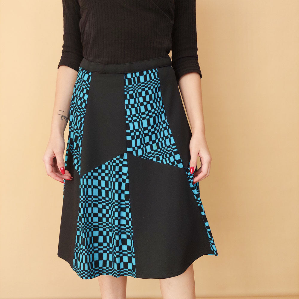 VIN-SKI-25294 Vintage φούστα μαύρο-μπλε S-M
