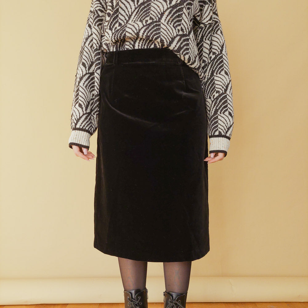 VIN-SKI-29436 Vintage φούστα μίντι βελουτέ μαύρη M-L