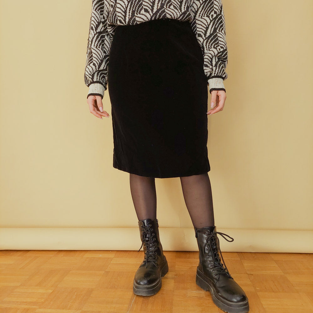 VIN-SKI-29438 Vintage φούστα μίντι βελουτέ μαύρη S
