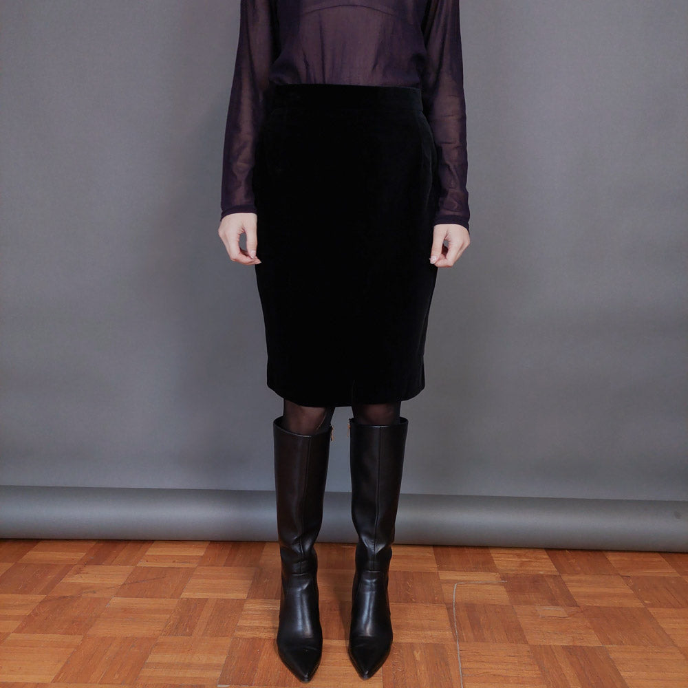 VIN-SKI-32929 Vintage βελουτέ φούστα μαύρη M