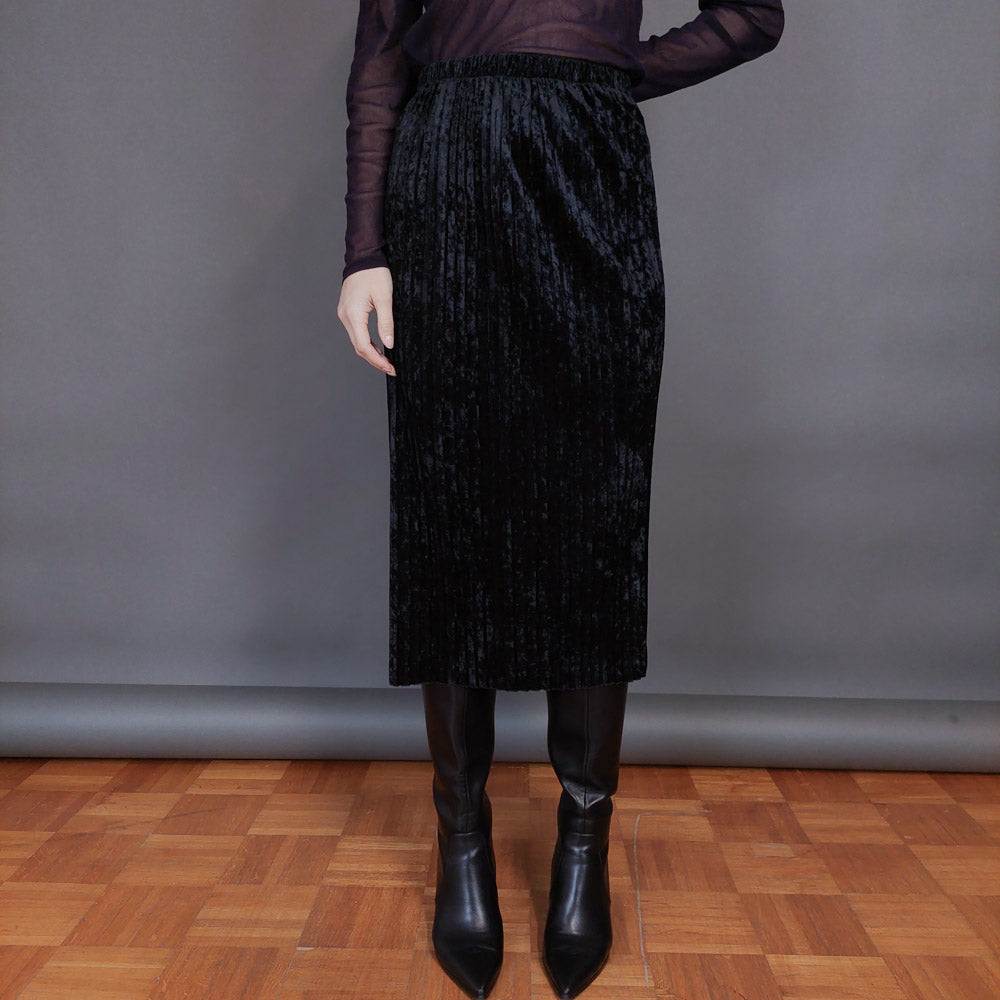 VIN-SKI-32930 Vintage βελουτέ φούστα πλισέ μαύρη XL