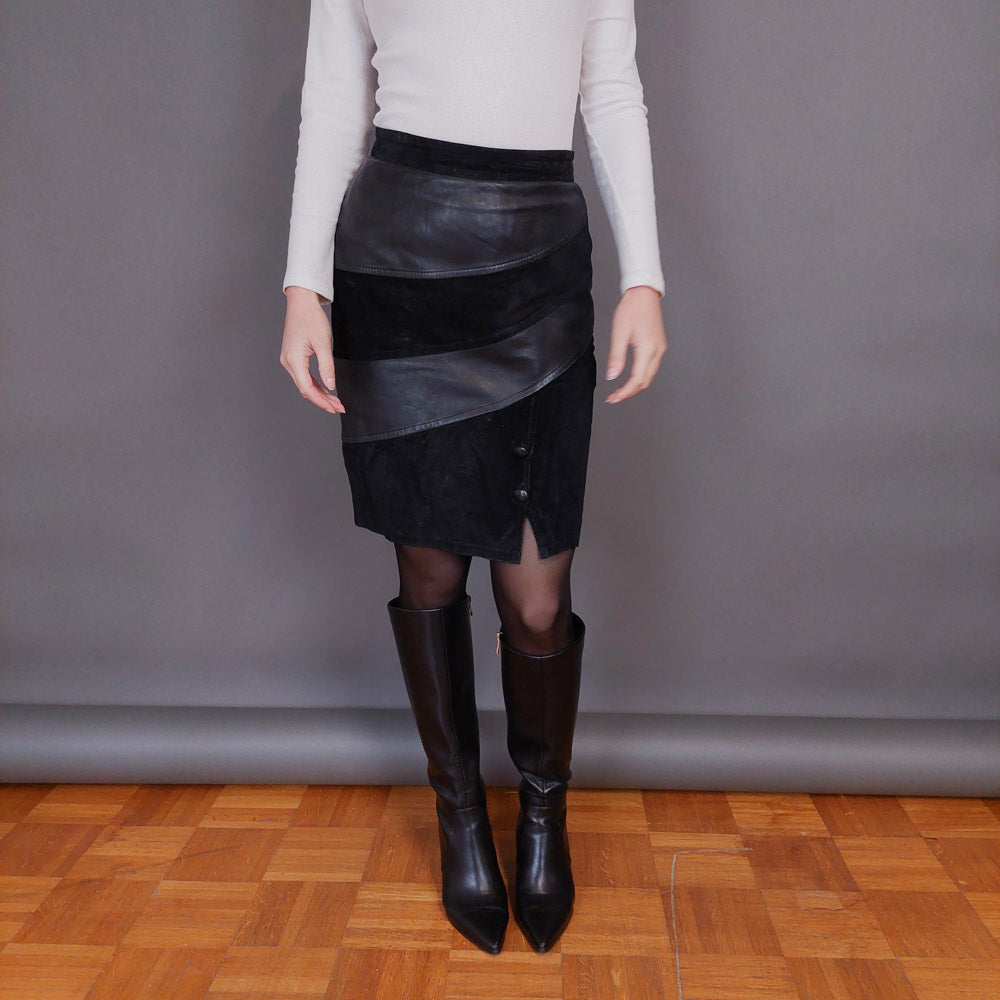 ΑΝΑΓΡΑΦΟΜΕΝΟ ΜΕΓΕΘΟΣ: 38 ΠΡΟΤΕΙΝΟΜΕΝΟ ΜΕΓΕΘΟΣ: S ΔΙΑΣΤΑΣΕΙΣ: Μέση: 36 εκ. (μέτρηση από άκρη σε άκρη) ΣΥΝΘΕΣΗ: 100% leather VINTAGE ΚΑΤΑΣΤΑΣΗ: Εξαιρετική ΛΕΠΤΟΜΕΡΕΙΕΣ: Μοναδικό κομμάτι, κλείνει με φερμουάρ και κουμπί, σουέντ και δέρμα, ιδιαίτερο σχέδιο. Το μοντέλο μας φοράει S και είναι 1,70
