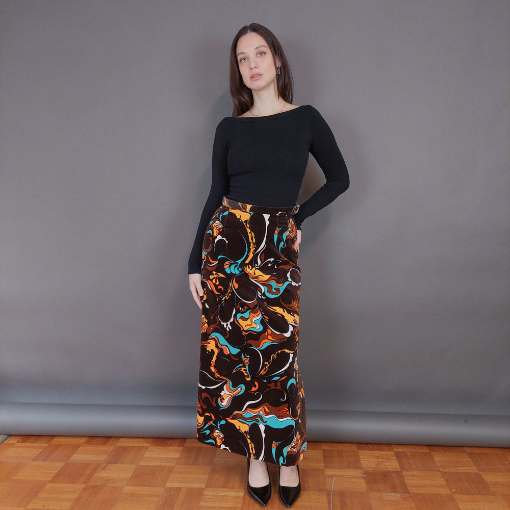 VIN-SKI-33275 Vintage βελουτέ φούστα εμπριμέ S