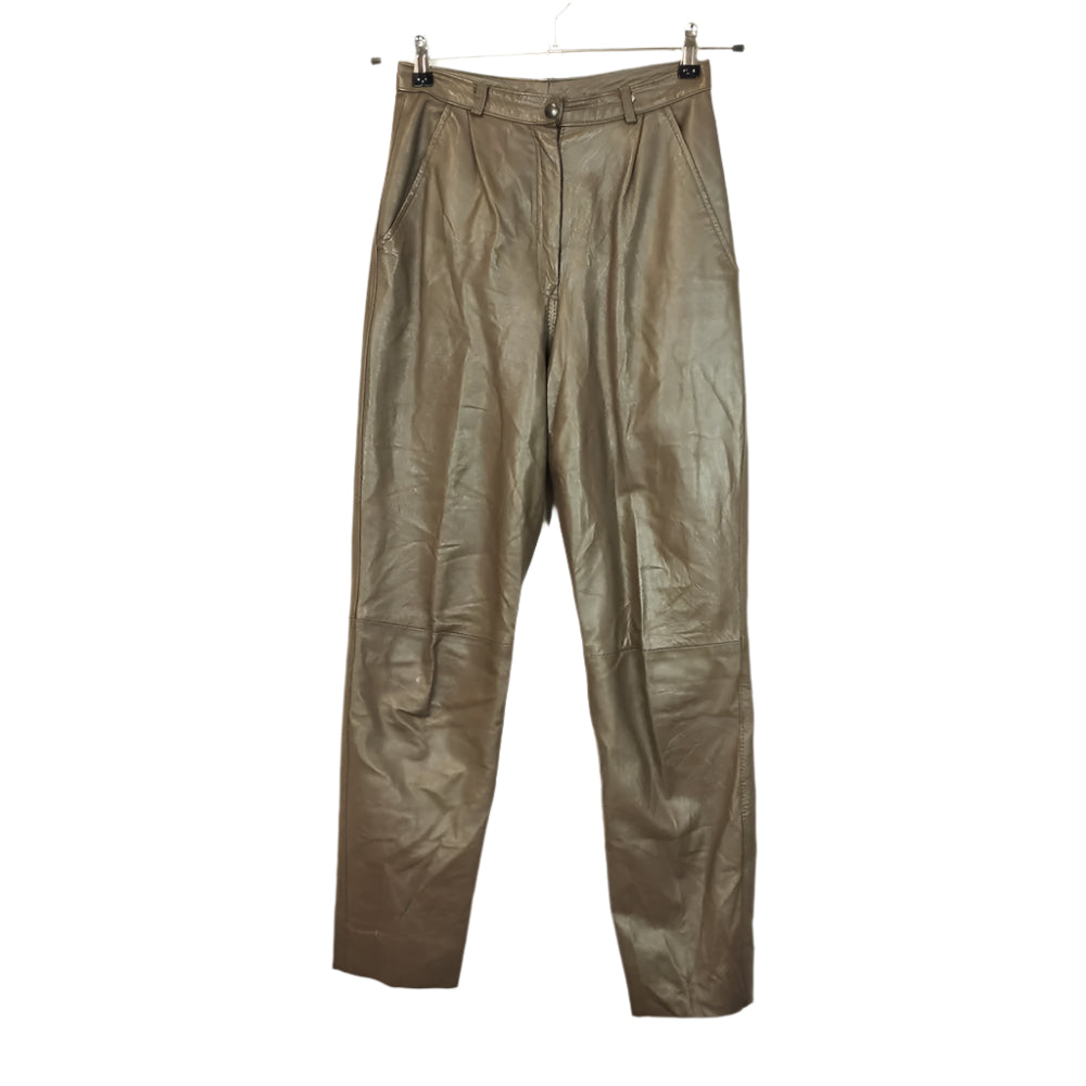 VIN-TR-30162 Vintage παντελόνι δερμάτινο λαδί S