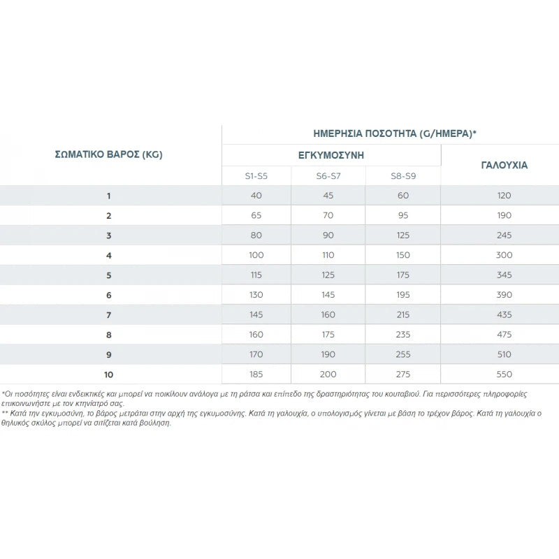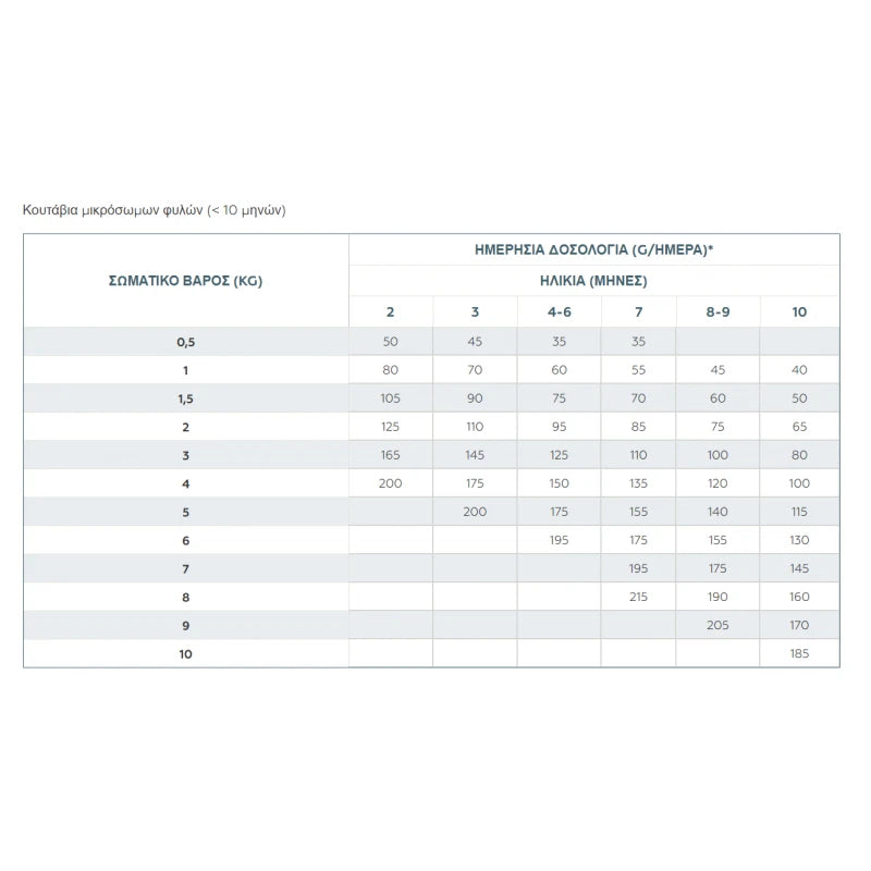 -Για κουτάβια μικρόσωμων φυλών (ΣΒ<10 kg) εως την ηλικία των 10 μηνών.